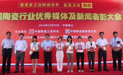 2010年10月20日,由中国陶瓷工业协会、中国陶瓷媒体俱乐部主办,益高卫浴特约的2009年度中国陶瓷行业优秀媒体优秀新闻表彰大会在佛山隆重举行,中国陶瓷工业协会理事长何天雄先生、副理事长傅维杰女士、副秘书长侯文全先生等协会领导,中共中央党校教授胡尔湖先生,佛山市文联副主席杨凡周先生等政府领导,益高卫浴董事长李钜先生,意美家卫浴陶瓷世界董事长陈伟强先生等企业领导以及众媒体企业代表近300人出席了本次表彰大会。