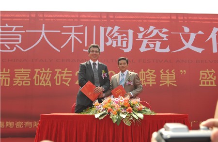 二是,用作为此次活动的承办方佛山宝嘉陶瓷企业董事总经理马晖的话说,是“能够与当今世界第一建陶强国意大利建立战略合作伙伴关系甚感殊荣。并承诺,还将继续联合各方资源,开展此类中意文化交流活动,为加深中意两国的文化认识、促进企业间的互信往来,创造更多的交流机会。同时,也为佛山建陶产业总部经济的发展添砖加瓦,贡献自己的一份力量。”
