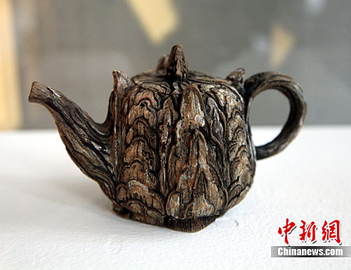11月2日,第三届台湾金壶奖陶艺设计竞赛展近日在台北县莺歌镇陶瓷博物馆开幕。图为展出的铜奖茶壶。中新社记者 陈立宇 摄