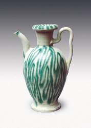 收藏家、世华艺术馆馆长赵月汀巡走在自家藏品的展区,热心地为同行和记者做“讲解员”,介绍自己的古陶瓷珍藏。他手指“五代北宋年间的越窑秘色瓷刻团花纹壶”自豪地说:“这把壶世界上仅存4件,数我的收藏最美观最精致。”