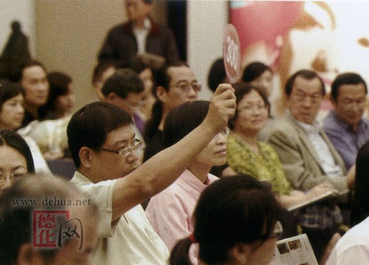 (“德化瓷目前的价格还远没有达到其应有的价值,在三五年之内,德化瓷的市场价肯定会出现一次大的飞跃,出现千万元甚至上亿元级的作品。”福建省工艺美术大师、福建省收藏家协会常务理事、德化古陶瓷收藏家陈明良说。)