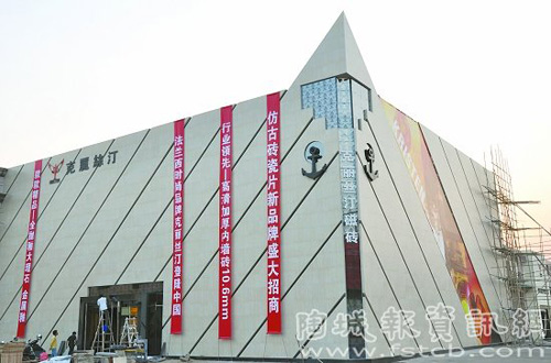 走进克丽丝汀陶瓷的展厅,其外形宛如一艘即将启航的航母,深深地吸引住记者。马中平介绍,公司展厅的设计理念是比较超前的,打破了陶瓷界欧式展厅的风格,充分利用了展厅所在道路转角地理位置的状况。据说该展厅已报名参加今年的陶瓷行业新锐榜评比,将以超前、新颖的设计风格轰动佛山陶瓷行业。克丽丝汀公司同时用象征80年代怀旧色彩的“斜纹”作为品牌的标志文化,广泛应用包含在了整个展厅、办公区、LOGO的设计以及员工的服装上,这也是企业的品牌文化概念之一。克丽丝汀陶瓷标榜自身的国际法兰西血统,意欲塑造一个充满法国文化品位的陶瓷品牌,展厅内充盈着法国的音乐,前台导购迎上来用优雅的法语问候着上门的客户。