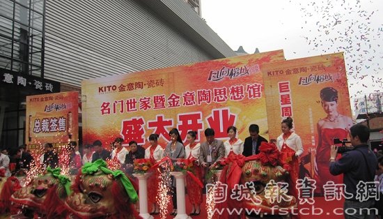 大手笔的广告投入、极具气势的活动场面、精彩的演出节目以及福州金意陶的全心投入,此次开业盛典一举创造了当地建材品牌的销售纪录,开业两天的销售额超过五百万元,让福州消费者再次领略了金意陶的力量。