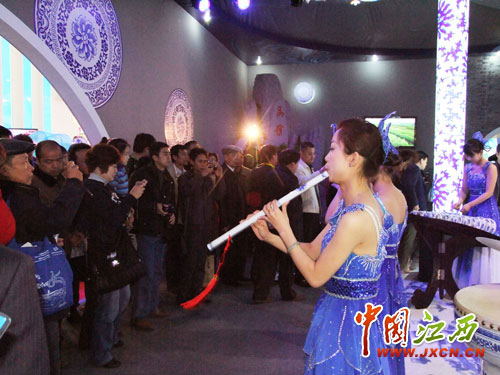 参观者还没进去展馆就开始忙着与展区入口处身着景德镇青花、玲珑、粉彩、颜色釉的四大名瓷服装的特型模特合影留念。优美动听的瓷乐表演响起,参观者又纷纷围着身穿青花纹饰裙的瓷乐团姑娘们,拿起手中相机拍摄。听完瓷乐,参观者蜂拥而上围上了传统陶瓷制作工艺的三位老人,老人们精湛的技艺让他们惊叹不已。右侧的茶道表演,地台中央的高科技3D全息幻影成像仪等处,同样也是人气旺盛之处,展馆的独具魅力让参观者流连忘返。南昌的李大爷对记者说:“景德镇展馆有特色,有文化,有内涵!”南京的王先生说:“景德镇不愧是CHINA,我一定要去一趟好好看看!”(余静 报道)