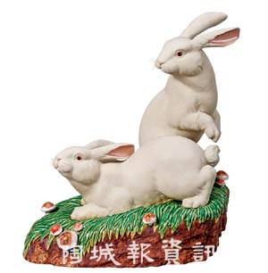 据介绍,今年新美陶公司有30多名作者参与了兔年生肖品的设计创作,共推出100多款兔年生肖品,涵盖高、中、低层次,价格从几万元到几十元不等。刘泽棉的《玉兔迎春》、梅文鼎的《心想事成》、刘炳的《金玉满堂》、霍家荣的《生机勃勃》等国家级大师的限量版更成为市场热点,刘泽棉的《玉兔迎春》等精品已被预订一空,此外霍然均的《吉祥如意》、霍秀银的《和气生财》、何毅青的《发财就手》、杨庆焜的《百业兴旺》等也受到广大市民的热捧。