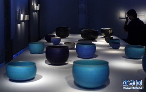 一名参观者在莺歌镇的陶瓷博物馆欣赏现代陶瓷展品。
