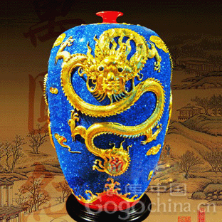 德化瓷器·世纪祥龙漆线雕蓝金锦瓶
