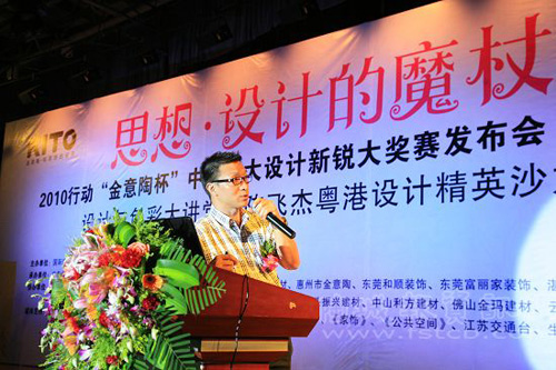 “金意陶杯”中国十大设计大奖赛举办现场,著名设计师陈飞杰在做演讲