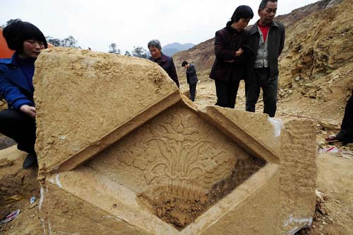 “不是枕头。没人愿把‘睡美人’装盒子里面,各人把脑壳搁盒子上,那样做很不舒服哟!应是墓主人日思夜想的女人,否则不会死了都放在一块。”亲眼见到“睡美人”被放进车里的工地民工古天祥认为。