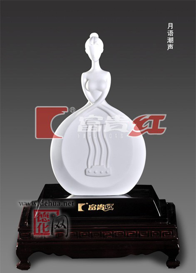作品《月语潮声》体现了具有泉州历史文化特色的民间音乐艺术——南音。作品以闽南少女形象象形了南音中的乐器四弦琴,形态端庄、优雅。该作品以文化象征的形式表达了泉州市委、市政府对菲律宾侨亲的希望:多了解泉州的文化,不忘乡音,人在海外,多为家乡的发展作贡献。同时,也希望通过文化交流,增进两国人民的友情。