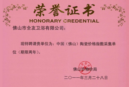 2011年3月30日,“中国(佛山)陶瓷价格指数抽样企业动员暨业务培训会议”在佛召开,全友卫浴等众多佛山知名陶瓷卫浴企业代表作为价格指数采集单位,与政府领导、陶瓷卫浴行业协会领导、以及媒体记者等150多人出席了大会。