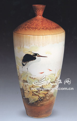 高温色釉综合装饰《秋韵》瓷瓶(陈军作品)
