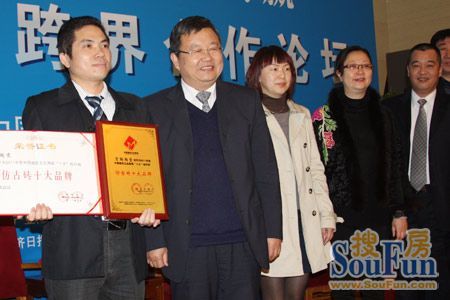中国建材流通协会会长孟国强为“仿古砖十大品牌”颁奖