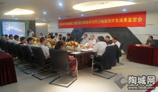 图为宏宇集团高清三维胶辊印刷技术与凹凸釉面砖科技成果鉴定会现场 袁国强 摄