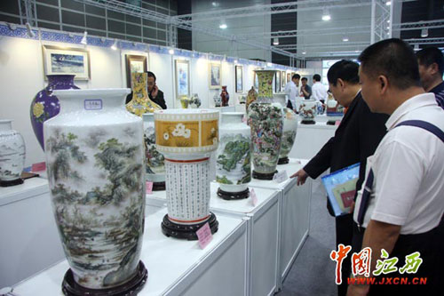 精美的景德镇陶瓷吸引了众多港商前来参观。(江西网记者 邱辉强 摄)