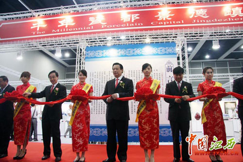 5月18日上午,江西省长吴新雄与前来出席2011江西(香港)招商引资活动周的领导嘉宾一起为景德镇陶瓷香港展剪彩,并饶有兴致地巡馆参观。