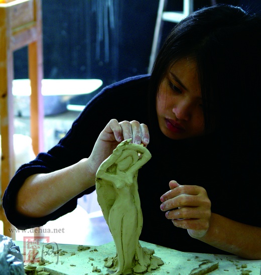 5月9日,陈静和她们班上22位同学一起,共同走进瓷都德化,到聚玉堂工作室进行陶瓷雕塑课程的学习。