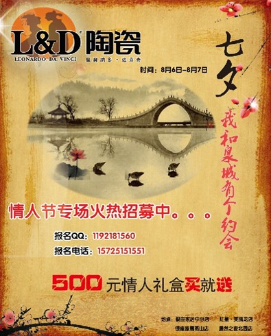 8月6日—8月7日L&D陶瓷大宴泉城,邀您一起共度这浪漫时光。特推出“我和泉城有个约会”主题活动。现火热报名中。。。