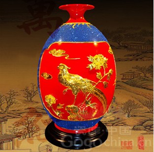 红瓷花瓶上的纹饰也常见金龙图案,与凤凰相反,彰显气势!