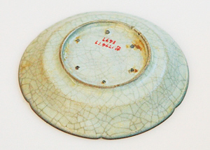 宋代哥窑青釉葵瓣口盘底部