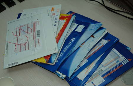 这就是来自广西各地的抽奖券快递包。这些快递包都还没拆开,等下我们将现场打开并将抽奖券投入抽奖箱,再现场抽出5名中奖者,中奖人姓名和号码也将现场公布,以上就是此次抽奖的概况。