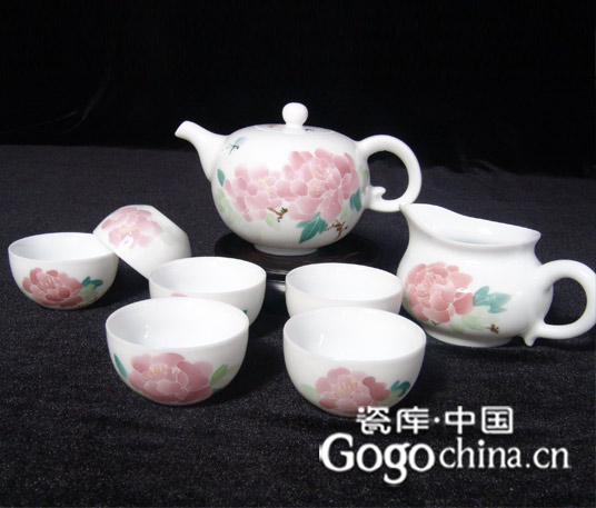 图:釉下五彩牡丹茶具