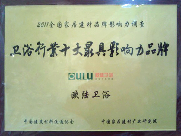 欧陆卫浴荣获2011年度“卫浴行业十大最具影响力品牌”称号