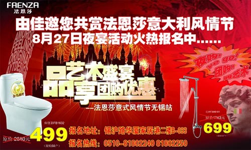 法恩莎卫浴意式风情无锡站 8.27夜宴活动火热报名中...