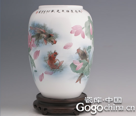 图:李志丹大师鲤鱼莲花陶瓷艺术花瓶