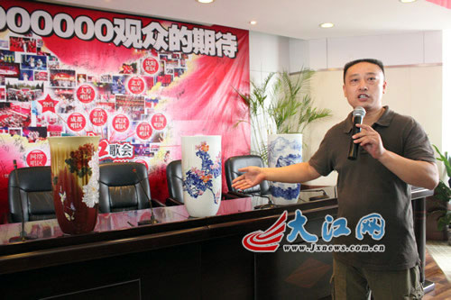 这三款画面意境优美、造型清新的陶瓷艺术品,是陶艺家余欣历时一年多完成的“杰作”。余欣介绍说,他与红歌非常有缘,前几年在电视上看到红歌会的海选,动人的歌声、熟悉的旋律以及一幕幕感人的场景,深深地打动了他。作为六十年代出生的他,红歌点燃了他的激情。“作为一位艺术家,我再也压不住心里的激情澎湃,我必须把千年的陶瓷文化,用我的画笔与红歌结合起来。”