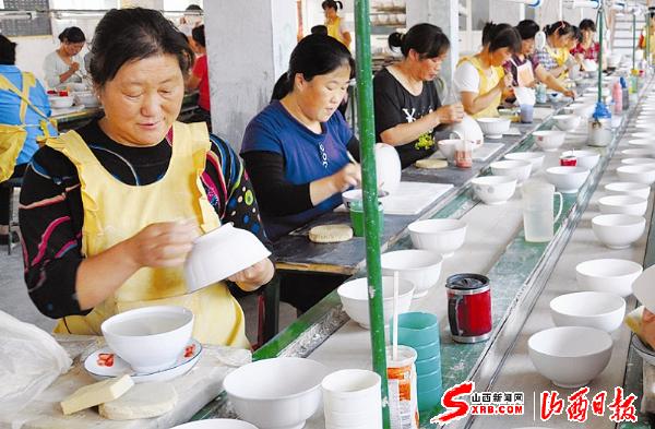 8月28日,阳城县侨枫瓷业公司工人正在生产日用陶瓷。该企业通过标准建设、招商引资等措施,实现了提质、提效。