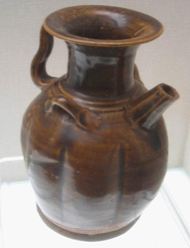 长沙窑产品特征:其釉大多呈色,少数产品在灰白色胎上施以微泛青色的白釉,有的还先在坯体上涂抹薄层白色或淡灰色化妆粉,然后施釉,以增加釉色亮度,衬托彩绘图案装饰效果。施釉方法主要用荡釉、浸釉、淋釉、滴釉和涂釉。釉有青、酱、白、绿、红和三彩釉等。