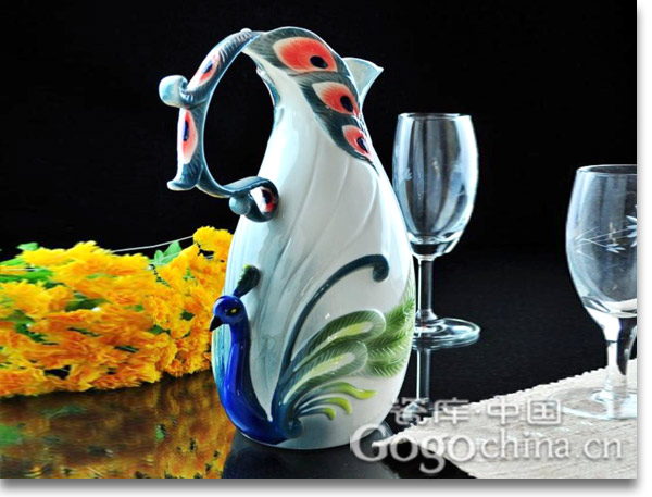 图:春节礼品 ·孔雀珐琅彩艺术花瓶10.5寸