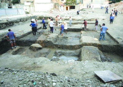 9月14日下午,南京市博物馆考古部在户部街小学附近一工地上考古勘探。2009年6月份,南京市博物馆考古部王志高主任曾指出:南唐皇宫的北界应当在新街口户部街一带!“地下文化层已经被扰动了,现在还不好下结论!”现场的考古专家李翔这样告诉记者。不过现场附近曾发现不少残缺的古代陶器、瓷器,这不免让人充满期待。有专家在现场表示:一旦证实,将是震惊考古界的发现。