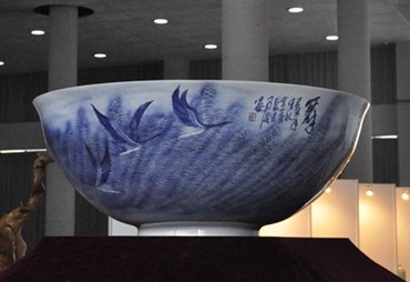 据悉此碗曾刷新了吉尼斯世界纪录,成为迄今为止最大的釉下青花薄胎碗,2010年曾受邀在上海世博会上展示,市场估价两千余万。薄胎瓷是景德镇特有的传统工艺,有“薄如纸、明如镜、白如玉、声如磬”的美誉。此碗系江西省工艺美术师、高级陶瓷美术师马俊所绘。
