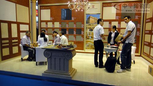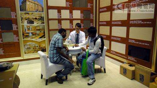 嘉俊陶瓷携最新款的微粉、玉晶石、罗马洞石等产品亮相第110届广交会,受到中外客商的青睐。在短短几天时间里,共有来自南美、中东以及欧洲等地的600多位客商前来咨询洽谈,对嘉俊的高品质产品表现出浓厚兴趣,现场签约及意向性协议金额超过上届。图为国外采购商在嘉俊展位洽谈业务。