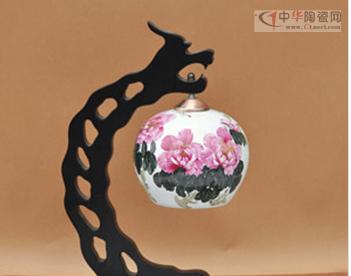 图:景德镇手绘粉红玫瑰薄胎陶瓷台灯