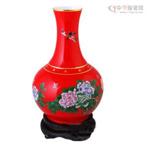图:花开富贵高档艺术中国红花瓶