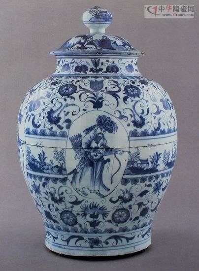 到了明末,说到外销瓷会提到一艘著名的沉船--“哈彻”号。从这艘沉船上打捞出23000余件中国瓷器,风格可以分为两类,一类是典型的转变期风格,另一类是克拉克瓷。这其中还有一些欧洲样式的瓷器,例如一些小芥末罐和猫型夜灯。明代瓷器大量输入欧洲,就引发了当地模仿中国瓷器的生产,这其中最著名的就是荷兰的德尔夫特生产的锡釉青花陶,装饰风格非常中国化。为了达到中国青花瓷器的这种效果,荷兰的陶工会先在陶胎上涂一层薄薄的釉料,先低温烧一次,然后再用钴料绘制图案,最后罩一层透明釉高温烧成。在东西方交流互动的过程中,就会出现杂交的图案设计,荷兰生产的德尔夫特陶上绘有中国人的形象,而中国生产的克拉克瓷器边饰采用欧洲的花卉,人物则是波斯形象。不独是在荷兰,当时世界各地都在仿制中国的青花瓷器。伊朗在17世纪仿制的产品,边线用黑色而不是蓝色,这是与中国青花瓷器的区别。德国在17世纪也有仿制。早期英国使用的粗制铅釉陶几乎是在100年之内,都转变成为这种锡釉青花陶。明代的外销瓷器对欧洲产生了很大的影响。