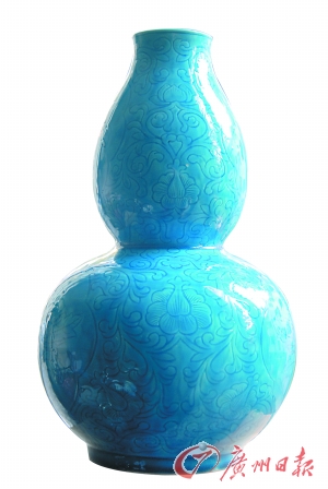 蓝釉葫芦瓶,上世纪50年代厂货,回流出口货。