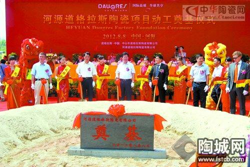 投入巨资打造的约2000亩的道格拉斯(河源)陶瓷生产项目,8月8日在河源市东源县骆湖镇新型环保建材基地举行盛大的奠基开工庆典仪式。中共河源市委副书记、市长彭建文,中国建筑卫生陶瓷协会副会长、秘书长缪斌,中共东源县委书记、县人大常委会主任叶少军,中共东源县委副书记、县长何广延,道格拉斯·中国董事长邓柱标,意大利道格拉斯陶瓷有限公司商务总裁Mr.jyrki Luomala,以及河源市委市政府相关领导,东源县委县政府相关领导,骆湖镇及东源其他各乡镇相关领导,中国建筑卫生陶瓷协会、广东省陶瓷协会及佛山市陶瓷行业协会相关领导,广东省质量检验协、佛山质检中心相关领导,新闻媒体界、金融界、设计界等各界嘉宾,意大利道格拉斯总部领导,道格拉斯·中国领导及全球经销商及合作伙伴、供应商伙伴共约700多人出席本次奠基仪式。
