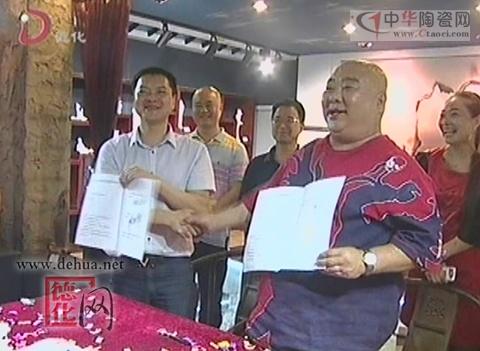 【同期声 铭思艺陶瓷有限公司总经理 林国华:我就想以名人的效应推动德化陶瓷会比较快,代言就是包括他的肖像权,还有三年里以他名义代言所作的推广,包括大幅广告,包装这一块的,也授权来进行推广。】