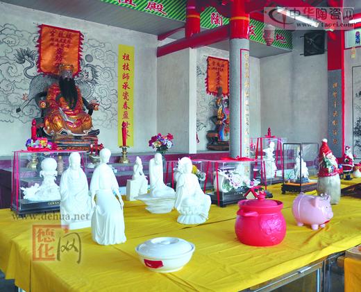 走进祖龙宫, 只见县里从事陶瓷业的陶艺家和企业家已早早来到殿前,他们带着各式的陶瓷产品前来供奉,有新开发并获得订单的产品,有传统瓷雕,瓷艺新作,还有西洋工艺和日用陶瓷。与人们常见的猪、牛、羊等“三牲”祭礼不同,这种用陶瓷当供品的祭祀文化在世界陶瓷史上独一无二,吸引了各路媒体的聚焦。“大家都把烧得最好的陶瓷拿来供奉,表示敬意,这里面体现的更多的是精神层面的东西,是对文化的传承。”中国陶瓷艺术大师苏献忠介绍道。