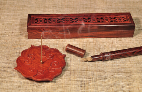 不同的香插,寓意也大不相同,这款来自檀香斋的大红酸枝如意香文化三件套结合如意纹设计而成,香盘上的如意云头与尖角方圆组合达到圆融无碍的境界,而香筒又附以银丝修饰,起到画龙点睛之效果,一抹抹如意承载着祈福禳灾吉祥美好的寓意,作为收藏品与礼品都是绝佳之选。