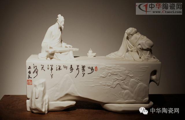 “瓷言坊”的展示厅沉稳中透着淡雅,简洁中不失大气,陈列的近百件作品无不让人体会到颜松柳“厚积薄发”所表现出来的独具匠心。他的瓷雕作品精致中多了一份“诗意”和“积淀”,仿佛我们能看到正在创作中的颜松柳,拿捏在手里的泥巴如同钢琴加手指尖跳动的音符,眉宇间的淡定和举手投足的挥洒自如都诉说着他对陶泥深厚又火热的情感。
