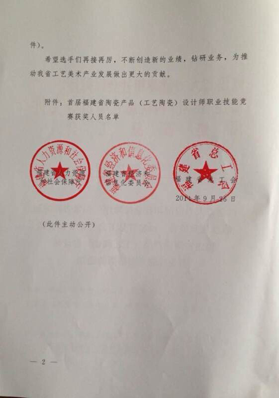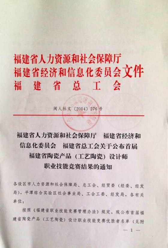 首届福建省陶瓷产品(工艺陶瓷)设计师职业技能竞赛优胜者名单 |