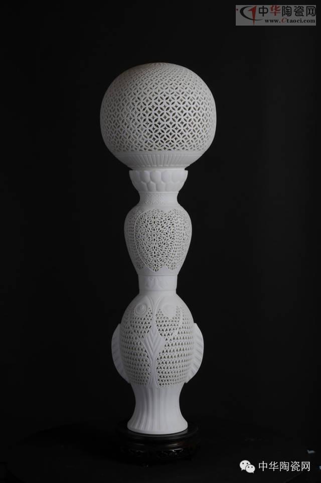这种陶瓷叫“通花”,又称透雕、镂空,是以雕刻为主的装饰手法。德化在明清的博山薰炉、八卦香炉、笔筒等产品上就有采用。但由于制工极其精细,目前此技法传承甚少。而从小受陶瓷文化陶冶的陈明华,则在继承传统的基础上,将这一技艺发扬光大,为陶瓷文化增添一抹亮色。