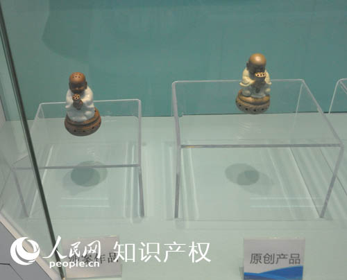 德化县知识产权保护教育基地展示的原创作品与侵权作品案例。(摄影:张丽鸥)