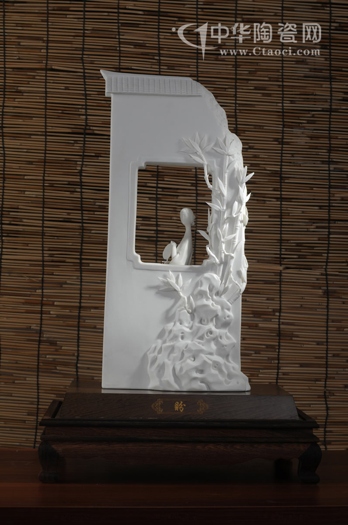 林彬彬,1987年出生在德化县南埕镇的林彬彬,人如其名,是个彬彬有礼的腼腆大男孩。2003年考入泉州工艺美术职业学院五年制大专“陶瓷大师班”学习雕塑,毕业之后继续师从中国陶瓷艺术大师——苏献忠,2014年成立了“凝韵瓷阁”工作室。据其介绍,“凝”是取“凝聚”之意,“韵”则是“韵味”,希望自己能够把德化陶瓷艺术最美好的“味道”创作好,表现好。其作品风格非常唯美,带着浓浓的古典诗情意境,仿佛是一幅立体的画,展示了古典诗词所营造的氛围。