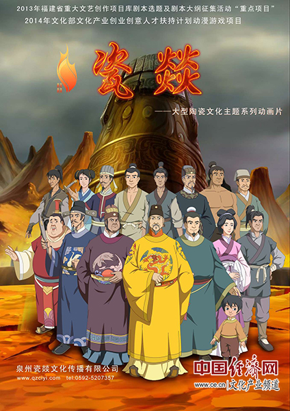 为了宣传“德化瓷烧制技艺及文化”非物质文化遗产,泉州瓷燚文化传播有限公司在2011年筹备打造推出陶瓷主题系列动画片《瓷燚》。据了解,这部动画片先后获得2013年福建省重大文艺创作项目库剧本选题及剧本大纲征集活动重点项目、2014年文化部文化产业创业创意人才扶持计划动漫游戏项目、2015年金恐龙亚洲创意荟国际动漫艺术周鼓励奖等。“一方面,陶瓷文化是德化县最传统的文化,同时动画也是现在的新兴产业,我们希望将传统的陶瓷文化与动漫产业进行创意的结合,在动画片中,将德化的民俗风情融入到故事情节当中,借此传播德化陶瓷烧制技艺,传承发扬德化陶瓷文化,同时也向更多人推介我们的德化旅游”《瓷燚》的项目负责人江志坚这样谈到。他也表示,希望通过动画的传播方式,在潜移默化中加深人们对于陶瓷文化的理解,一改以往单单停留在传统制作层面的认识。